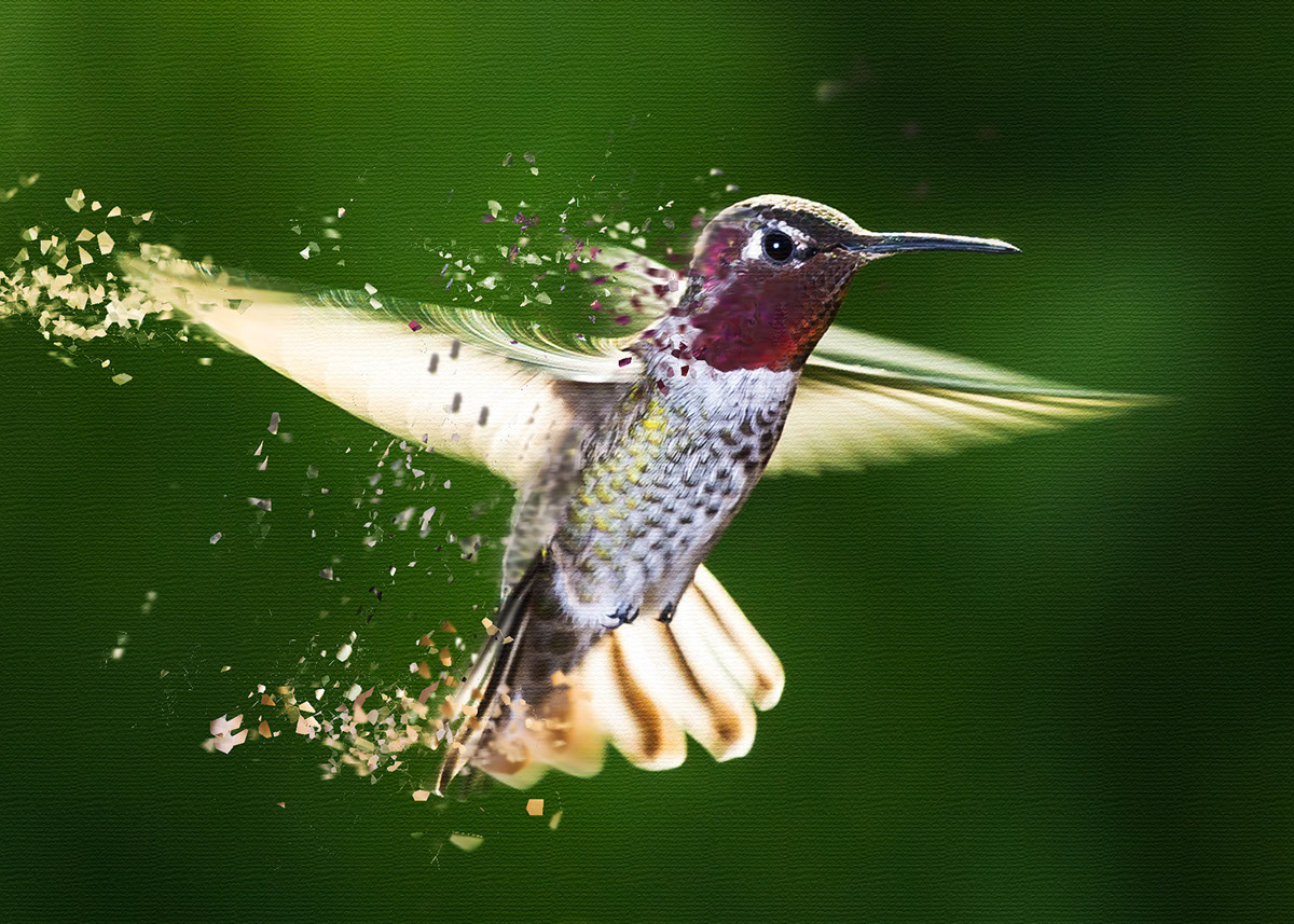 This photoshop action depicted a hummingbird fracturing in to small pieces as the bird flapped it's wings.